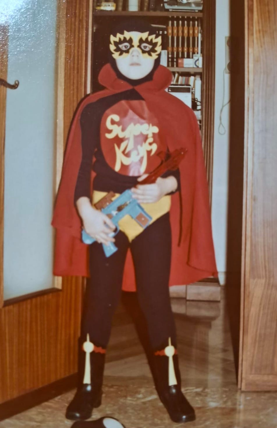 Like most kids, I was obsessed with superheroes and comic books, so my mom decided to make me my very own costume. But not a costume based on a pre-existing comic book character, no. This was to be my very own special superhero — Super Kays!
